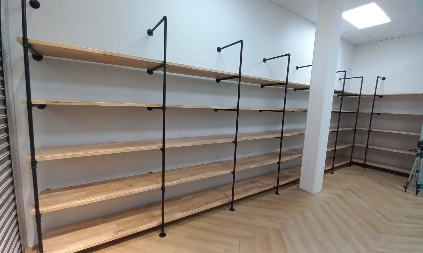 Supplier of locally made flanges, galvanised fittings, custom length pipes for your decor and furniture DIY projects. Also supply wooden shelves and Barn Door hardware...